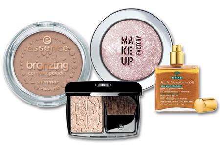 Želite li naglasiti lice kao što to čini Kate Bosworth to učinite samo ukoliko vaša koža nije iznimno masna. Nanesite malo shimmera na čelo i vrhove jagodica. Jennifer Aniston se odlučila istaknuti svoje adute bronzerom. Kombinacijom mat i svjetlucavog bronzera možete dodatno naglasiti svoj dekolte, ali i mudro "stanjiti lice". Tamnijim bronzerom ili puderom konturirajte dio lica ispod jagodične kosti, a shimmerom naglasite same jagodice kako bi vaše lice dobilo mršaviji izgled, ali i bolje izgledalo na fotografijama.
