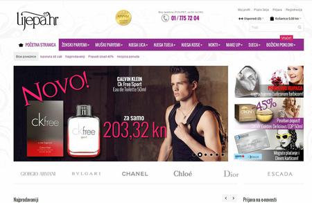 Lijepa.hr mirisna je internet parfumerija koja u Hrvatsku donosi bogatu ponudu povoljnih parfema, šminke i kozmetike za njegu lica, kože, kose i noktiju po cijenama sniženim i preko 50%. Za vas priprema megapopularne artikle koji godinu za godinom oduševljavaju muškarce, žene i djecu širom svijeta.