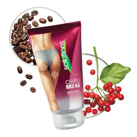 Ovaj novi član obitelji Avon Solutions svoju učinkovitost i energizirajuća svojstva duguje kompleksu koji objedinjava ekstrakte gloga, biljke mate te zrna kave, a kreiran je kako bi već nakon 6 dana uporabe povećao sagorijevanje masnoća i do 200 posto. Naime, zrna kave imaju hidratacijska svojstva i pomažu u mršavljenju, biljka mate poboljšava mikrocirkulaciju te pospješuje sagorijevanje masnoća, dok glog djeluje kao antioksidant i popravlja izgled kože. Tako su nakon 2 tjedna uporabe intenzitet i dubina čak i najtvrdokornijeg celulita umanjeni, a nakon 4 tjedna dramatično je popravljen izgled kože iz svakog kuta gledanja. Također, kompleks losiona Solutions CelluBreak sprječava nakupljanje masnoća u stanicama kože, a time pomaže spriječiti nastanak novog celulita.