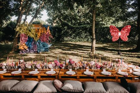 U središtu zelenila smjestio se dugački piknik stol. Dekoracija je odisala romantikom – bogati cvjetni aranžmani u različitim vazama, visoke svijeće u šarenim bojama i zlatni beštek. Personalizirani pristup nikada ne izlazi iz mode, zato je svaku influencericu dočekala i millennial pink kartica s Instagram imenom.
