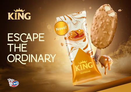 Nove sladolede King prati i nova komunikacijska platforma King “Escape the ordinary”, osmišljena kako bismo u potpunosti dočarali inovativne okuse svakog Kinga. Pozivamo vas da s “Escape the ordinary” zaronite u svijet mašte, svijet prepun neodoljivih užitaka. Pričom o svijetu mašte u koji naši potrošači uranjanju sa svakim zalogajem Kinga nastojimo prenijeti jedinstveno putovanje kroz okuse i teksture, slavimo inovaciju, kreativnost i neumornu potragu za novim iskustvima.