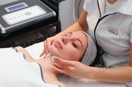 Slijedi obrada lica Skeyndor aparatom od čega je prva faza aktivirajuća struja koja se provodi u kožu malom mlaznicom, a za ovaj tretman je specifično i da se prvo tretira jedna strana lica, a zatim druga.