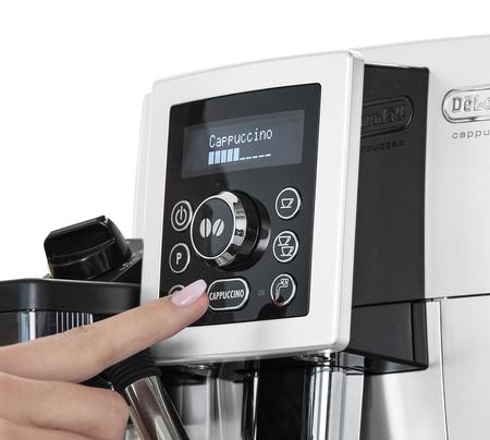 Aparat za kavu Delonghi Ecam 23.460.W veliki je hit među ljubiteljima svježe pripremljene kave. S obzirom da se radi o aparatu za kavu koji prati De’Longhi filozofiju “od zrna do šalice”, Delonghi Ecam 23.460.W priprema vrhunsku šalicu vašeg omiljenog cappuccina ili espressa. Za pripremu kave možete koristiti svježa zrna vaše najdraže kave ili prethodno mljevenu kavu. Ovaj izuzetno popularni model odlikuje se snažnim pritiskom od 15 bara, uklonjivom posudom za mlijeko i izdašnim spremnikom vode od 1,8 litara. Također se može pohvaliti personaliziranim postavkama pomoću kojih svoj omiljeni napitak možete prilagoditi vlastitom ukusu, svaki puta. Automatski program čišćenja smanjuje i svakodnevno održavanje što je jedan od glavnih razloga za kupnju ovog aparata za kavu. Možda najvažnija specifičnost ovog superautomatskog aparata je priprema savršenog cappuccina, café latte ili latte macchiato uz pomoć jedinstvenog De’Longhi LatteCrema Sistema sa samo jednim pritiskom na gumb.