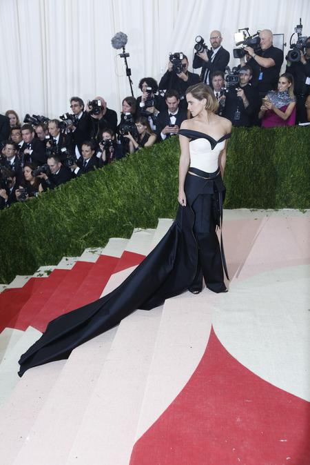 Glavna tema razgovora na Met Gali bio je outfit Emme Watson i to ne zato što je ponovno odjenula suknju preko hlača, već zato što je bio potpuno načinjen od otpada. Njen look uključivao je crno-bijeli korzet s golim ramenima i krojene crne hlače sa dugačkim šlepom, izrađeni od reciklirani plastičnih boca, a sve potpisuju Calvin Klein i Eco Age.