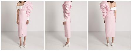 Izabel je odabrala midi haljinu s oversized ramenom u nježnoroza nijansi s bijelim detaljem. Na stranici brenda vidmo da je cijena haljine 2.670 €.