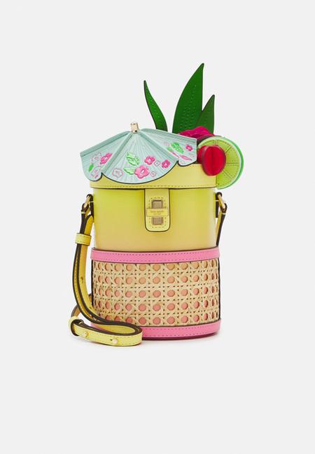 Naime, u pitanju je torba brenda Kate Spade koji je i inače poznat po svojim osebujnim, zaigranim i zaista jako kreativnim komadima s kojima nitko ne prolazi nezapaženo. Ova kožna torbica je valjkastog oblika, a na samom vrhu se nalaze, također kožni, koktel kišobrančić, limeta, listovi i crveni i ružičasti detalji zbog kojih izgleda kao da se radi o bogato ukrašenom koktelu. Dolazi u žutoj boji koja se pri dnu prelijeva u ružičastu te ima i žuti kožni remen zbog kojeg se može nositi preko ramena.
