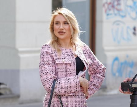 - Pročitaj više: Plavuša sa špice ružičasti kompletić u Chanel stilu nosi sa zanimljivim čupavim mokasinama. Hmm
