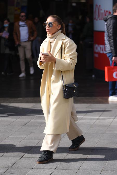 Ova djevojka upotpunila je svoj ležerni monokromatski stajling crnim maranticama. Na bež kombinaciju od glave do pete, dodala je i crnu dizajnersku torbu. Djevojka je odabrala dolčevitu i udobne pletene hlače za pravi 'cozy' zimski outfit - sve je tako meko i udobno.