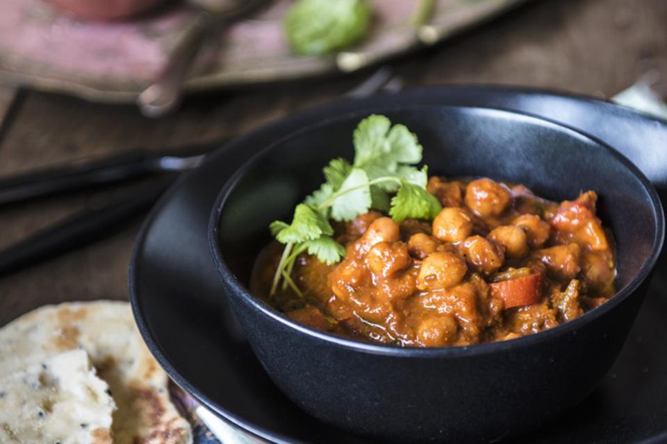 Priprema: Popržite kratko sjemenke kumina i korijandra te ih stavite u mužar s kurkumom i mljevenom paprikom pa ih zajedno usitnite. Pržite na malo suncokretova ulja luk na srednje jakoj vatri, dok ne postane proziran. Luku tad dodajte sitno nasjeckani češnjak, naribani đumbir i čili te pirjajte još nekoliko minuta. Primiješajte mješavinu začina i tikvu narezanu na kockice. Neka se pirja nekoliko minuta. Kad se oslobodi miris, dodajte pelate i kokosovo mlijeko te kuhajte 15-ak minuta. Ocijedite slanutak pa ga dodajte umaku i tikvi, a kad tikva posve omekša, umiješajte špinat. Nakon što špinat uvene, a slanutak se zagrije, dodajte nasjeckani korijandar i limunov sok. Posolite i poslužite uz rižu ili lepinju.