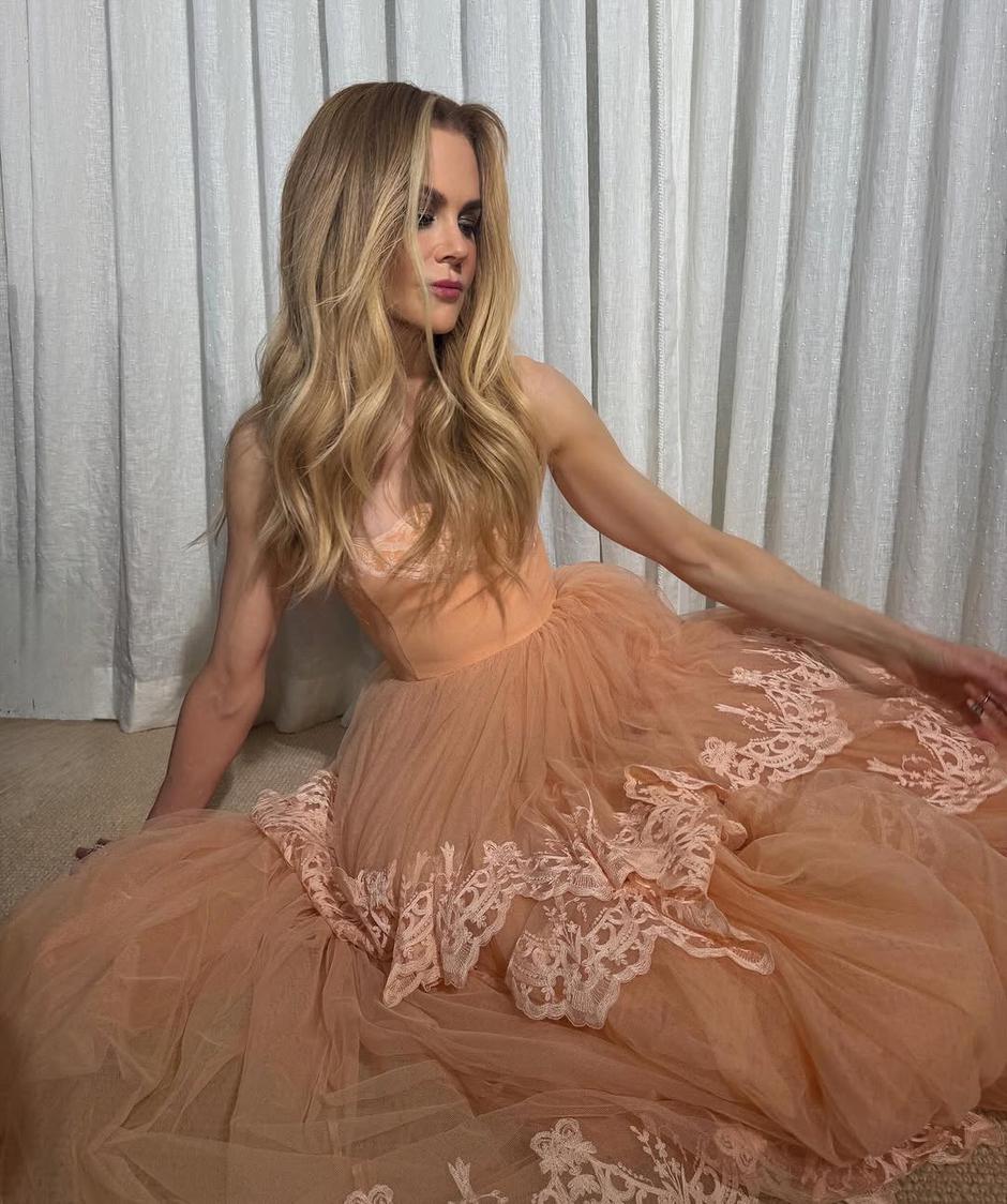 Ova raskošna boja izgledala je posebno divno u kombinaciji s Chloé haljinom u boji breskve, s tilom, a dodatno je naglašena frizurom koju je Chris Appleton opisao kao ležerne i neuredne valove. Frizer je poznat po tome da koristi proizvode Color Wow i Shark alate za oblikovanje kose, te je i ovaj put uz njihovu pomoć kreirao blago razbarušeni efekt koji je i dalje bio dovoljno glamurozan za važan događaj kojem je Nicole prisustvovala.