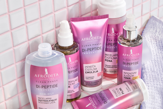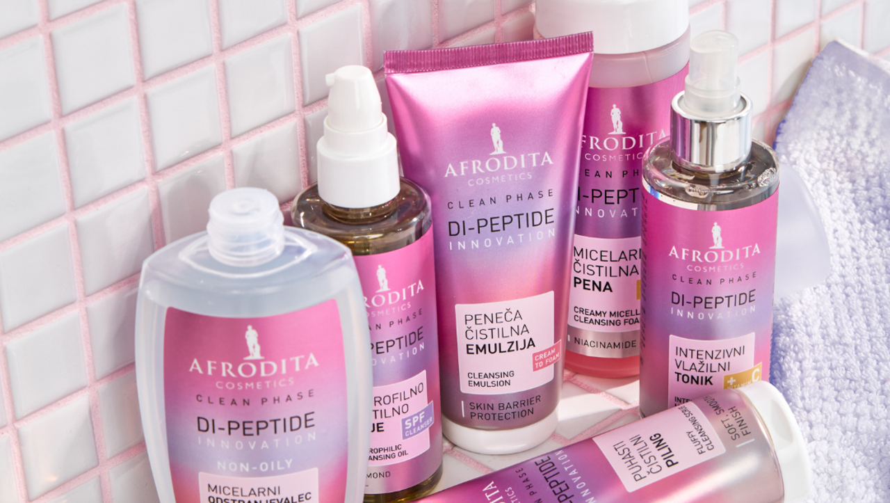 Proizvodi DI-PEPTIDE INNOVATION podržavaju trenutačno najpopularniji beauty trend – metodu dvostrukog čišćenja, koju se najviše preporučuje navečer, a osobito onima koji tijekom dana koriste šminku, proizvode koji sadrže SPF filtre te svima onima čija je koža sklona začepljivanju pora. Učinkovitost hidrofilnog ulja za čišćenje koje otapa ostatke šminke, SPF filtre i ostale nečistoće topive u ulju, izvrsno dopunjuje lagana, pahuljasta micelarna pjena za čišćenje koja s kože uklanja nečistoće topive u vodi i ostatke čistača na bazi ulja. Kao što ističu u Kozmetici Afrodita, idealan zaključak rituala čišćenja je nanošenje intenzivnog hidratantnog tonika koji izdašno vlaži kožu te poboljšava upijanje ostalih proizvoda za njegu.