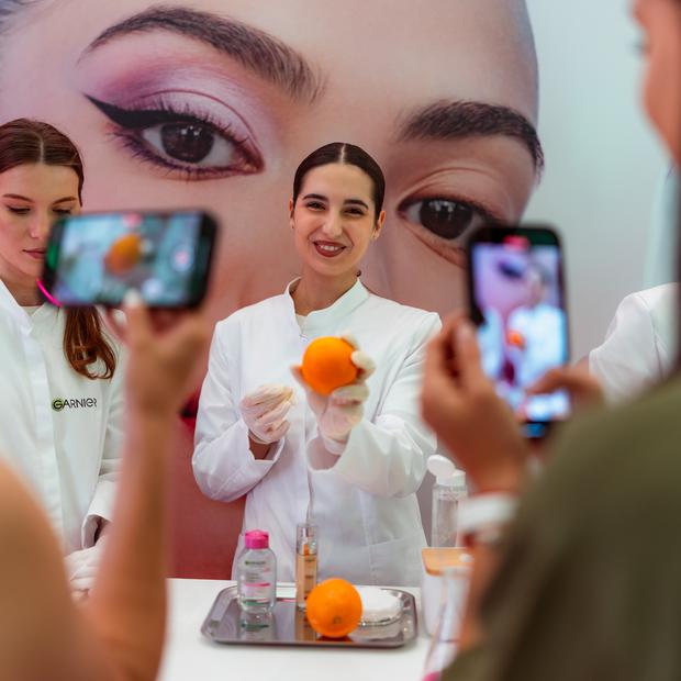 Korektorom prikrijte sve nepravilnosti te nanesite rumenilo ružičaste nijanse (Soap & Glory Kick Ass Concealer - Light, Kryolan Lip N' Cheek - Lotus i Dior Blush - 830 Rose Dragee). Najvišu liniju obraza lagano naglasite svjetlucavim puderom (MAC Cream Color Base, Luna). Ukoliko to vaša koža zahtjeva, nanesite puder za matiranje na područja lica koja vam se maste. Usne završite nježno ružičastim ružem za usne (Kryolan Lip N' Cheek, Lotus i MAC Cream Cup).