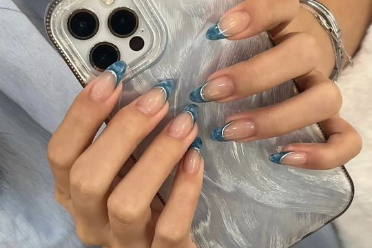 Francuska manikura inspirirana traperom ili diskretni ukrasi odličan su izbor, a metalik i kromirani detalji posebno dobro funkcioniraju na plavoj podlozi. Zapravo, efekt je sličan modnom pravilu stiliziranja traperica: dodaj upečatljiv remen ili modni dodatak i cijela kombinacija dobiva novu dinamiku.