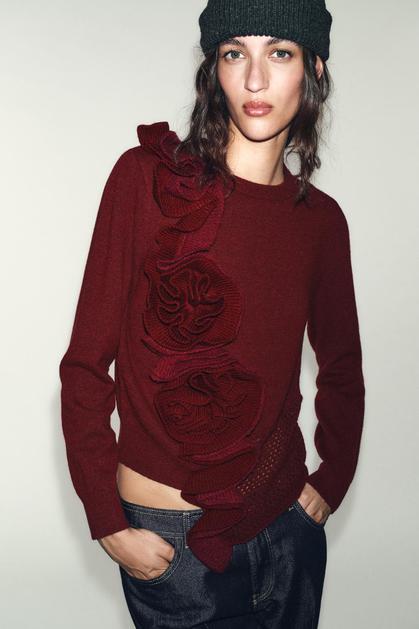Sad: 19,99 eura (nekad: 35,95 eura) Pulover s cvjetnim aplikacijama