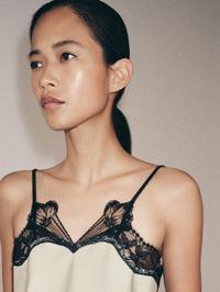 Moda Dugo nismo vidjeli ovako zanimljivu čipku na satenskom topu. Izgleda poput tetovaže na dekolteu 12. Travanj 2026.