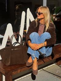 Osim brušene kože, ove jeseni nosimo i samt. Na ovom kompletu nam izgleda posebno dobro