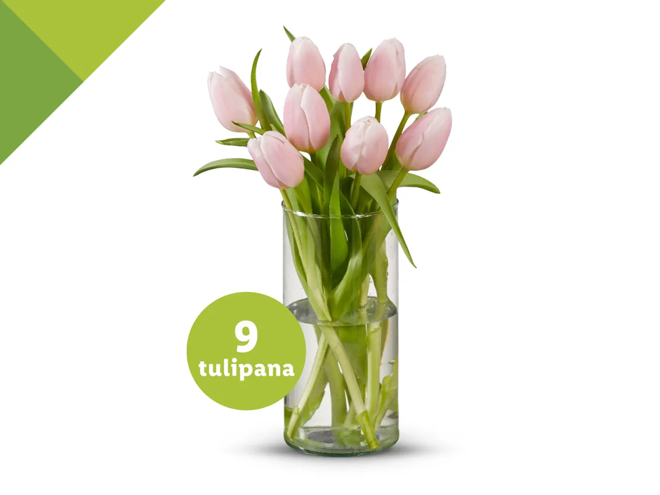 Drugi Lidl buket koji nam je zapeo za oko jest buket tulipana. Proljeće je vrijeme kada su tulipani zvijezde svakog stola, naročito za vrijeme Uskrsa pa ako ideš u goste ili gosti dolaze k tebi idućih nekoliko dana, Lidl u ponudi ima 9 tulipana u buketu za cijenu od 3,99 eura.