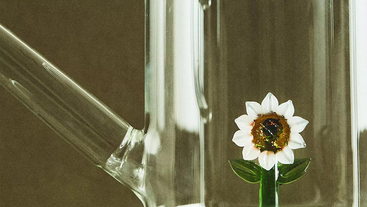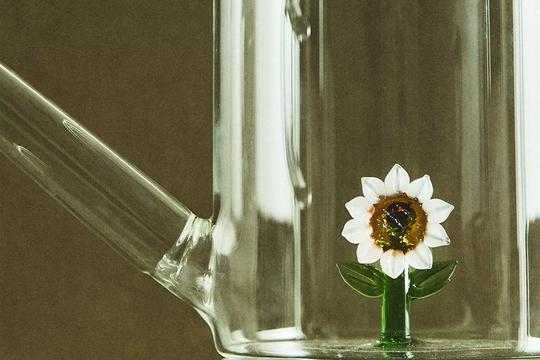 Prva kantica koja nas je osvojila istog trenutka je ona koja je načinjena od izdržljivog borosilikatnog stakla koje je potpuno prozirno, a unutar nje se nalazi fiksirana figurica suncokreta s bijelim laticama također načinjena od borosilikatnog stakla. Preslatko! Ova šarmantna kantica visine je 17,5 centimetara, širine 10, a dubine 29 centimetara.