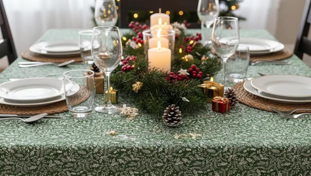 - S obzirom na to da se radi o prilično važnom i svečanom trenutku, i sama dekoracija stola bi trebala pratiti taj ton. Uz tanjure, čaše i druge dodatke, osnova svega je dobar stolnjak - naravno, s božićnim motivima