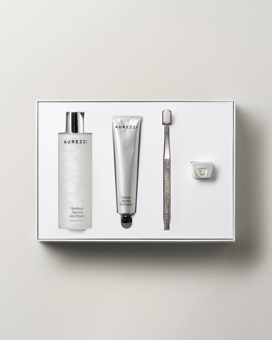 - Aurezzi je brend proizvoda za njegu usne šupljine koji u ponudi ima one s 24-karatnim zlatom i srebrnom