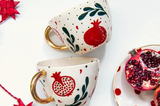 Božićna atmosfera već je stigla u Chia Cups studio, a s njom je došao i jedan sasvim novi motiv. Naime, već dobro poznatim Chia točkicama te božićnim motivima poput vjenčića, imele i borovih grančica, sada se pridružio i nar, odnosno šipak. U moru najrazličitijih zimskih i božićnih motiva, upravo šipak nitko nije očekivao, ali on zapravo ima najviše smisla - obožavano je zimsko voće koje nam jača imunitet u hladnim danima, predivne je crvene boje i pritom je prepun koštica koje su jako slične Chia točkicama.