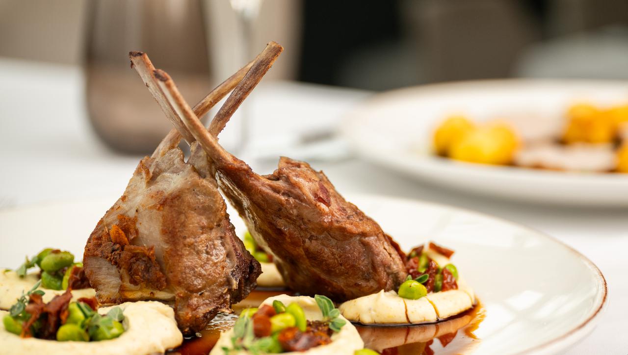 Glavna jela nude i za vegane pravo ljetno blago: veganska gozba od celera, duxellesa gljiva i crnog vina u umaku koji diše bogatim biljnim aromama. Za ljubitelje ribe tu je poširana raža s pak choijem i umakom od peršina, a tempura twist donosi hrskavost hama u tempuri s prokulicama. Neizostavna je i šarena farsa – pileća farsa s glaziranim povrćem i kaparama, koja podsjeća na veselu, šarenu scenu djetinjstva. Pečenica na španjolskom donosi teleću bijelu pečenicu u španjolskom umaku s kroketima od sira, dok janjetina u dimu impresivno zaokružuje priču dimljenim janjećim french rackom s pireom od kokica, bobom i pancetom.