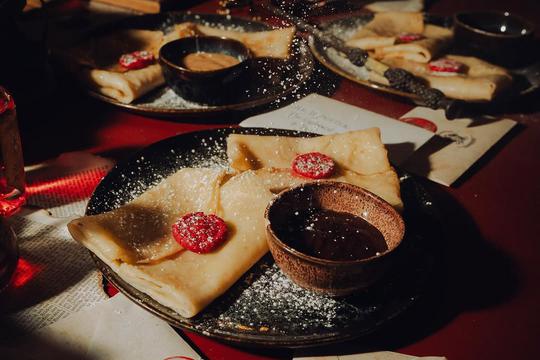 Nakon ovog slanog "predjela" slijede dvije slastice, Hogwarts Letter Pancakes, palačinke presavijene u oblik pisma (čija je cijena također 5 eura) te kolač u stilu lava cakea, Dark Arts Souffle za 6,50 eura.