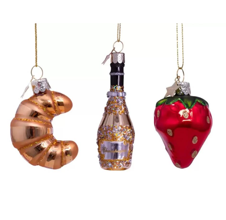 Foto: Shareno, ukrasi za bor u obliku šampanjca, jagode i kroasana (25 eura)