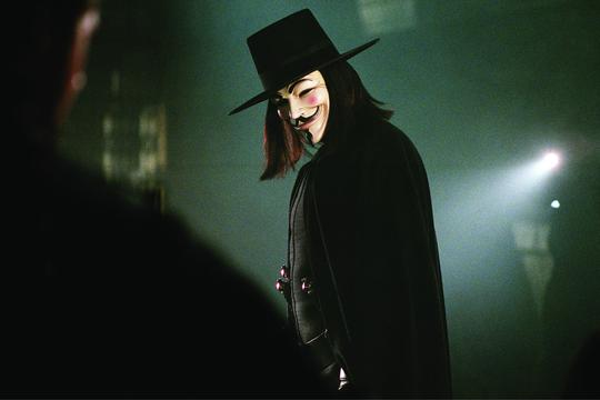 - Anarhist po imenu V, poznat po svojoj prepoznatljivoj maski Guya Fawkesa, bori se i pokušava srušiti vladu u ne baš tako dalekoj budućnosti