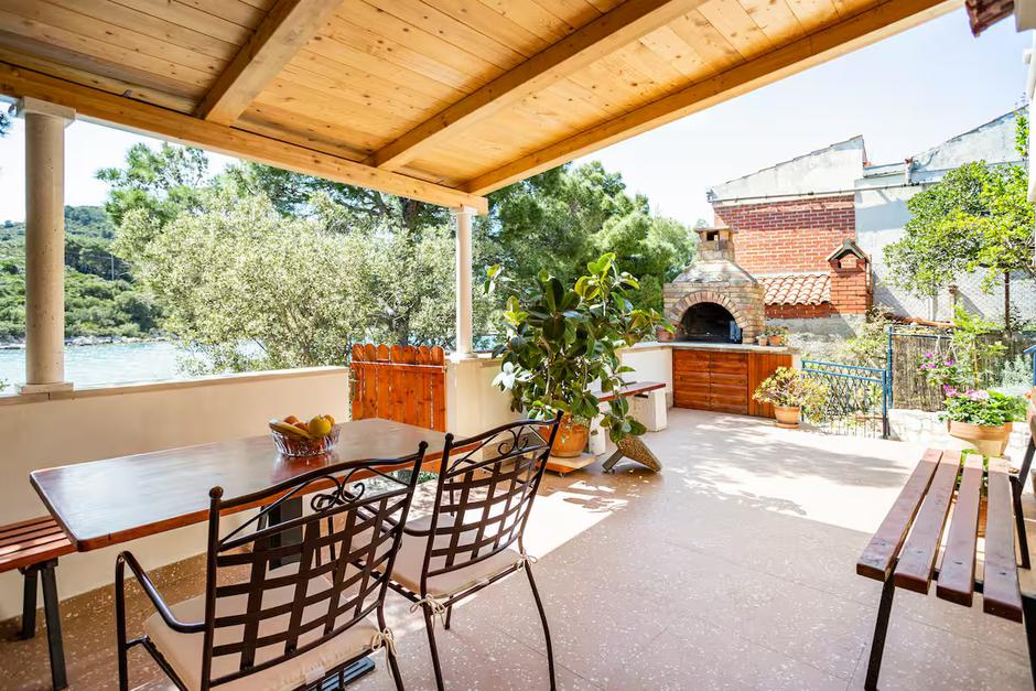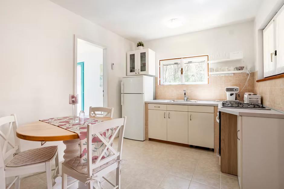 Osim što je njezina lokacija čarobna, sama kuća nudi sve što je potrebno za bezbrižan i opuštajući boravak. Smještena u prizemlju, ima udobnu spavaću sobu s bračnim krevetom, modernu i potpuno opremljenu kuhinju koja se otvara prema prozračnom dnevnom boravku, te kupaonicu s tušem. No, ono što posebno oduševljava su dvije prostrane terase s kojih se pruža nezaboravan pogled na more, savršene za jutarnju kavu, romantične večere ili jednostavno uživanje u tišini dok nas opuštaju valovi i cvrčci.