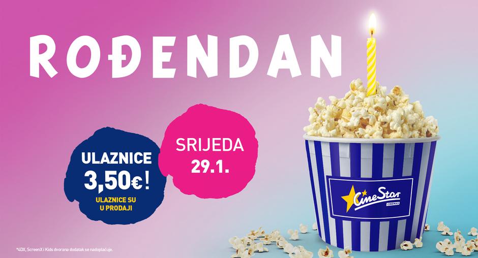 - Povodom svog rođendana će Cinestar u srijedu, 29. siječnja, nagraditi publiku projekcijom sjajnih filmova po cijeni od samo 3,50 eura