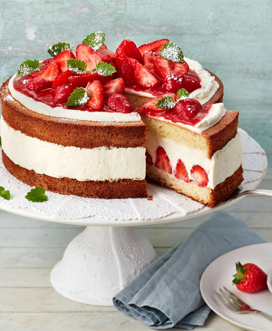 Ne smatra se uzalud torta od jagoda sa šlagom klasikom. Tako je ukusna, a tako jednostavna – a i pojede se tako brzo. Osnovni recept je vrlo jednostavan. Ova torta od jagoda izgleda sjajno na nedjeljnom stolu nakon ručka uz kavu čak i bez kompliciranih dekoracija.