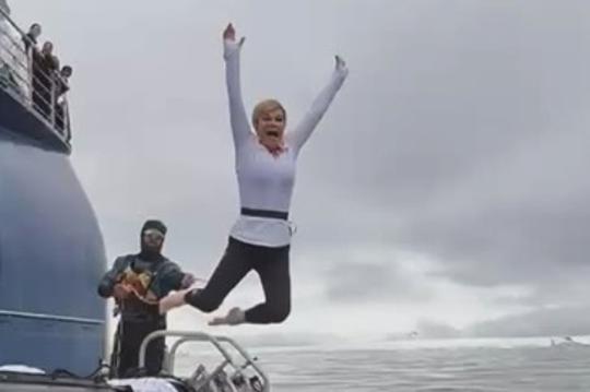Posljednjih dana, bivša hrvatska predsjednica Kolinda Grabar-Kitarović puni stupce medija zbog svog putovanja s s Antarktike. Najhladniji kontinent na svijetu posjetila je u organizaciji Kristijana Iličića i njegove agencije za putovanja Nomadik Travel. I dok smo posljednjih dana mogli pratiti putovanje na društvenim mrežama kroz razne fotografije, sada je Kolinda Grabar-Kitarović oduševila javnost sa svojom hrabrom odlukom - skočila je u ledeno more. Trenutak skoka je zabilježen i podijeljen na društvenim mrežama, a snimka je brzo privukla pažnju javnosti.
