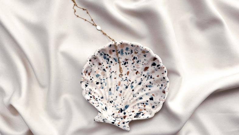 Predivna dekorativna školjkica čini nam se savršenim dodatkom za čuvanje nakita, posebno ljeti. Kao i svi ostali dekorativni predmeti, poput svijećnjaka, podmetača i posudica i školjkice dolaze u dvije varijante, s terrazzo uzorkom te s mramornim efektom.