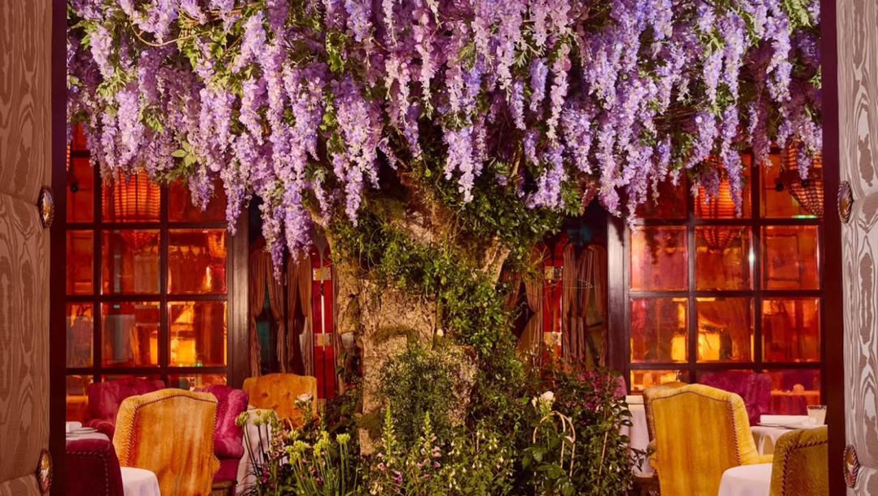 Transformacija restorana proteže se od samog ulaza pa sve do najintimnijih prostorija, stvarajući nezaboravno iskustvo za sve posjetitelje. Već na ulazu goste dočekuje očaravajući luk sastavljen od raznovrsnog cvijeća, uključujući ružine stabljike, lisičine, tratinčice, žabnjake, klematise, geranije i mačju metvicu, stvarajući dojam ulaska u tajni vrt, a unutrašnjost recepcije pretvorena je u livadu cvijeća, s imerzivnom instalacijom sezonskih biljaka i paletom boja inspiriranom regentskim dobom. U skrivenim nišama, umjetnica Meg Boscowen oslikala je prizore inspirirane britanskim krajolikom, a posebnu čaroliju donosi pergola prekrivena knjigama s čijeg svoda kao da padaju stranice, dok se prostorom širi zvuk ptičjeg pjeva. Ovdje gosti mogu sjesti za pisaći stol okružen kovitlajućim stranicama i uslikati najljepše fotografije.