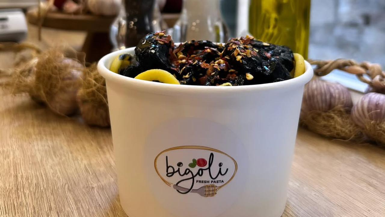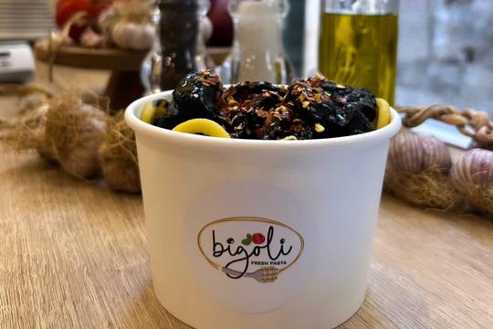 U splitskom Bigoliju ovu tjesteninu možemo pojesti s različitim umacima: rajčica, pesto, pekorino sir i papar, bolonjez..., ali na meniju su i dvije morske verzije, sa šest vrsta plodova mora ili sa sipom i crnilom od sipe. Mljac!