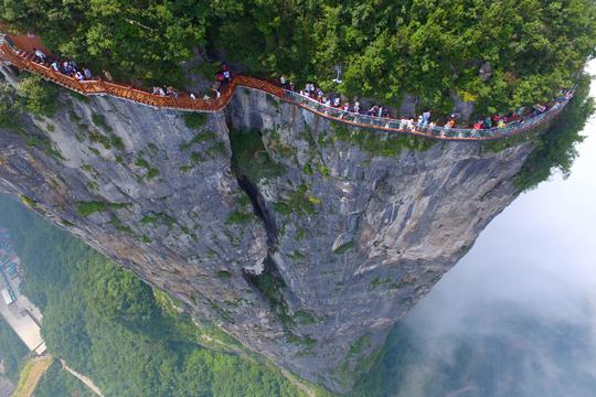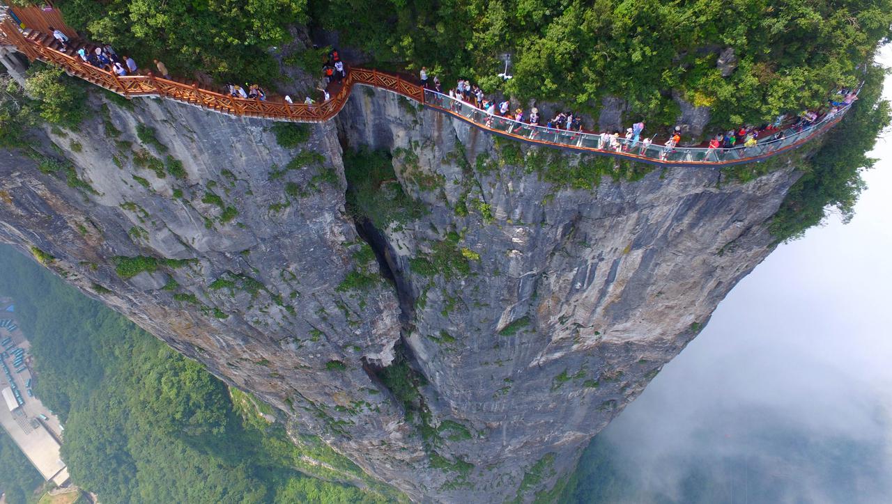 Putovanje Tianmen Skywalkom sigurno nije za one sa slabim srcem. Obujmivši se uz liticu, staza sa staklenim dnom klizi oko stjenovite planine 1432 metra u zraku.