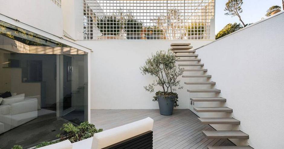 Premda bijeli zidovi i izloženost vanjskom prostoru daju veliku svjetlost i otvorenost kući, dom ipak uspijeva stvoriti puno privatnih mjesta sa strateški postavljenim pregradama i nekoliko zaklonjenih balkona.