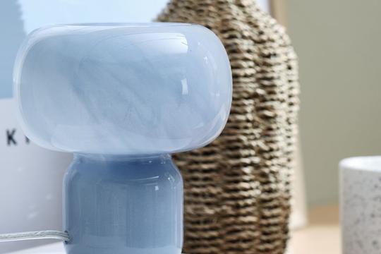 Ono što HJARNE lampu odmah izdvaja od ostalih je njezina svjetlo plava staklena baza koja prostoru daje nježan, pomalo nostalgičan izgled. Staklo reflektira svjetlost na suptilan način pa stvara ugodnu atmosferu, što je idealno za večernje opuštanje u dnevnom boravku ili spavaćoj sobi. Upravo takvi komadi namještaja i dekoracija trenutačno su veliki trend u uređenju interijera - retro inspirirani detalji koji unose karakter u prostor, ali zadržavaju jednostavne linije modernog dizajna.