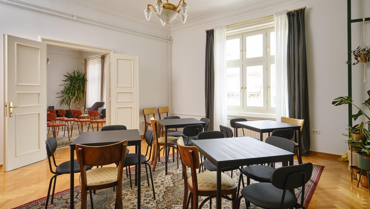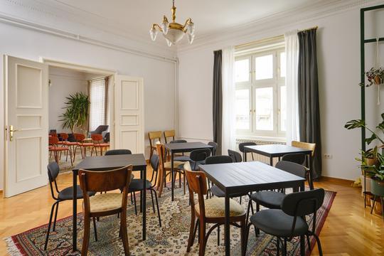 Ovaj modularni prostor osmišljen je za radionice, prezentacije, brunch evente, snimanja podcasta i razna medijska događanja. Svojim promišljenim dizajnom pruža inspirativan okvir za sve koji vjeruju u moć estetike, razgovora i kreativne suradnje.