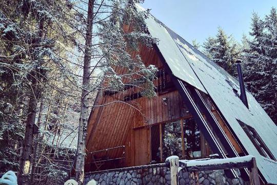 - Od slika ove drvene kuće, tipičnog goranskog A oblika, usred šume prekrivene snijegom nam rastu zazubice