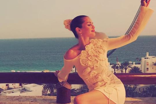 Kroz seriju fotografija i videa na Instagramu, Selena je pokazala kako je u potpunosti prigrlila ulogu buduće mladenke. Posebnu pozornost privukla je kombinacijom bijelog bikinija i mladenkinog vela, a nosila je i nekoliko elegantnih bijelih haljina, uključujući bisernu halter neck haljinu otvorenih leđa i pletenu haljinu brenda Cult Gaia čija cijena je oko 700 €.