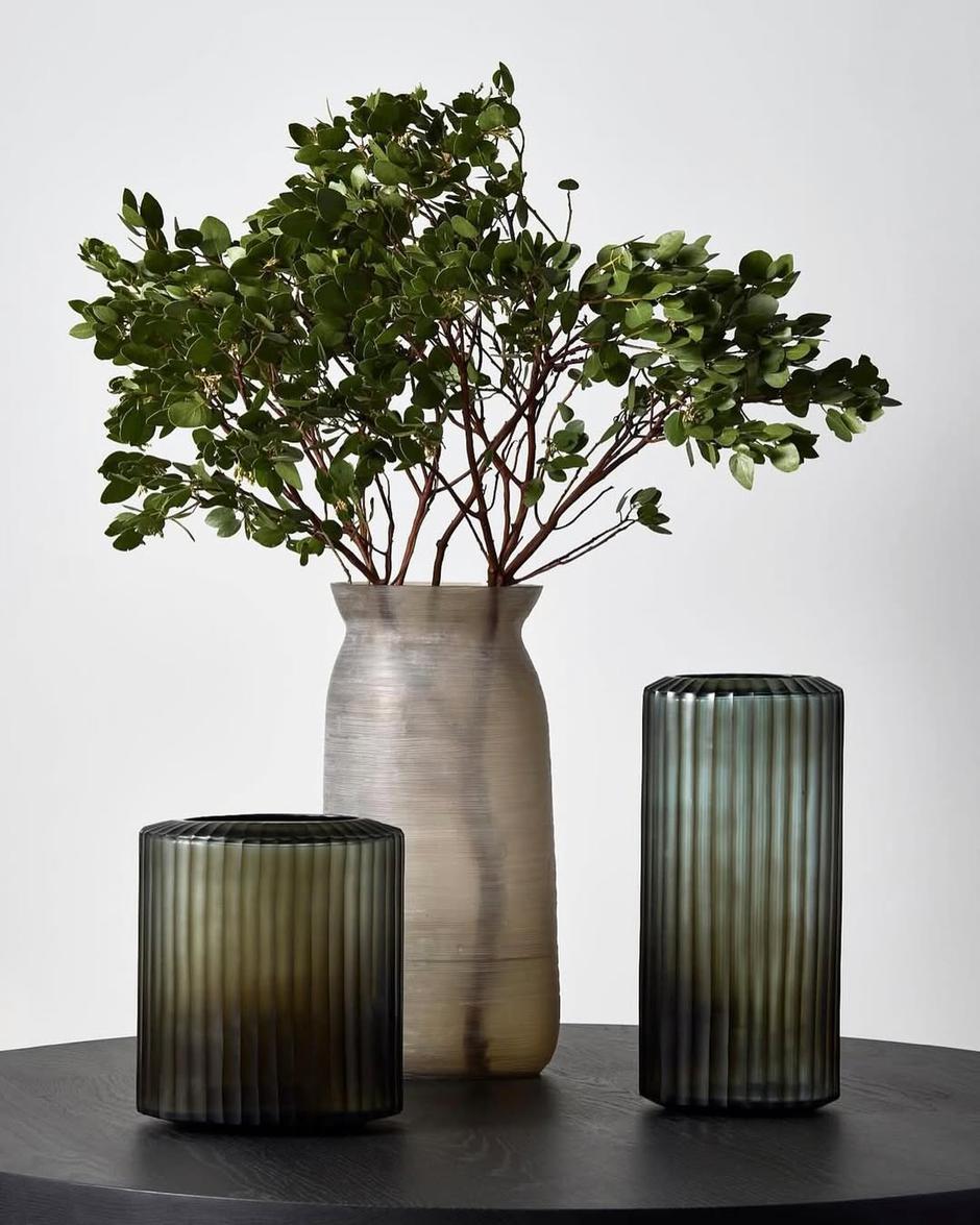 Velike vaze odavno su nadišle svoju tradicionalnu ulogu držača za cvijeće. One su samostalna umjetnička djela koja mogu definirati estetiku prostora i u njega unijeti neočekivani dašak boje i teksture, pri čemu materijali od kojih su izrađene igraju ključnu ulogu. Staklene vaze, bilo da su prozirne, matirane ili u boji, unose u interijer osjećaj lakoće i prozračnosti, reflektirajući svjetlost i otvarajući prostor, dok keramičke i kamene vaze, poput onih s rebrastom ili grubom teksturom, donose toplinu, organski osjećaj i bezvremensku eleganciju.