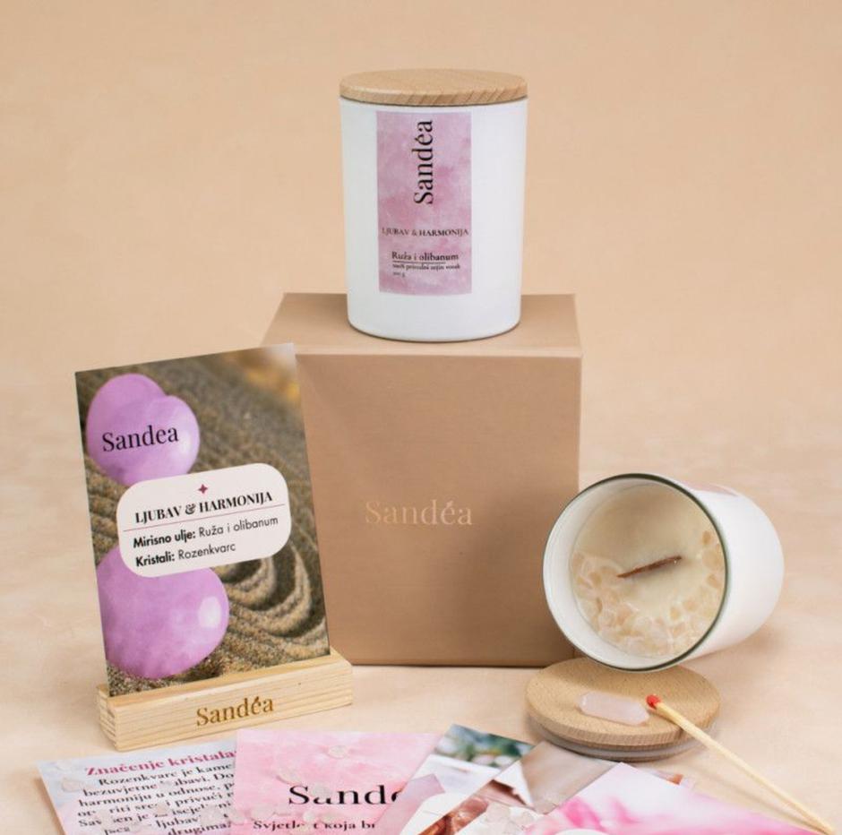 Marijana Blagojević, žena koja stoji iza brenda Sandea, kako sama priznaje, već godinama živi svijeće – doslovno i simbolično. Iako njezin obiteljski brend Blamar, posvećen jedinstvenim poklonima za krštenja, pričesti i druge posebne trenutke uspješno posluje već 15 godina, Sandea je njezina osobna priča i tiha strast koja je godinama rasla u pozadini, sve dok nije prerasla u brend koji danas miluje sva osjetila. Ime brenda pažljivo je odabrano, s jednakom pažnjom s kojom bira i sastojke s kojima radi, a nastalo je spajanjem riječi san i dea. San, jer Marijana vjeruje u moć tihih trenutaka koji nas vraćaju sebi, i Dea, koja na latinskom znači božica, i koja je simbol ženske snage, ljepote i stvaranja. Zajedno, kaže Marijana, čine Sandeu – brend koji ne nosi samo ime, već i osjećaj. Prostor. Tišinu s karakterom. Miris koji te vraća – sebi.