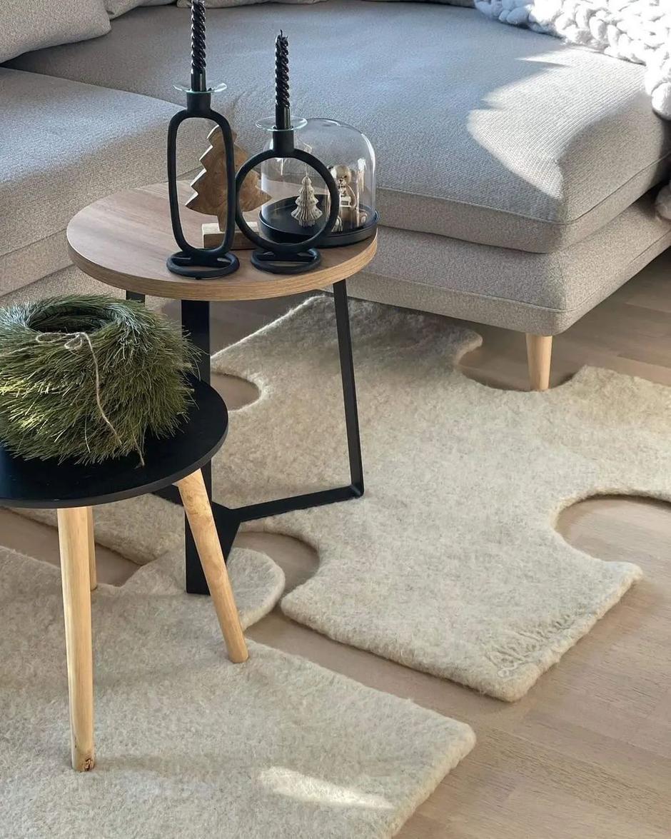Njihov uvjerljivo najpopularniji tepih je onaj u obliku puzzle, veličine 1 x 1 metar, koji se u prostoru može koristiti samostalno ili se pak više komada može složiti poput popularne slagalice, a Ivana kaže da je slaganje ovih posebno veselje čak i onima kojima obične puzzle idu na živce. Zasad postoje u natur boji, iako je ova simpatična obitelj voljna istražiti koliko je moguće ponuditi ih i u drugim prirodnim bojama (bez bojenja), a onda i eventualno bojati vunu, a što je, kaže, projekt za sebe. "Jednu bih zanimljivost samo voljela spomenuti - iako mi čitavo vrijeme govorimo o tepisima, mi ih s razlogom zovemo art tepisima jer ih mnogi podjednako vide kako na podu, tako i na zidu. Izutetno su lagani, pogotovo s aspekta tepiha za koji nekako uvijek imamo ideju u glavi kako su teški i kako je teško s njima manipulirati."