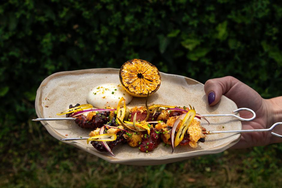 Glazirana svinjetina Char Siu obogaćena je pečenom paprikom, kiselim vrhnjem i „poderanim gaćama“; pohana piletina u verziji Kokoš Parmigiana sjaji uz džem od rajčica, stracciatellu, cherry salatu i parmezan, dok se Harissa hobotnica s maslinama i majonezom karameliziranog limuna nameće kao nezaobilazan ljetni hit.