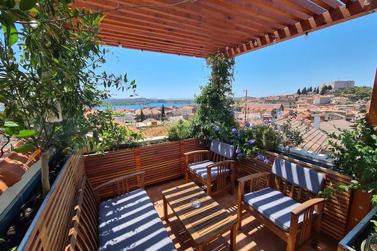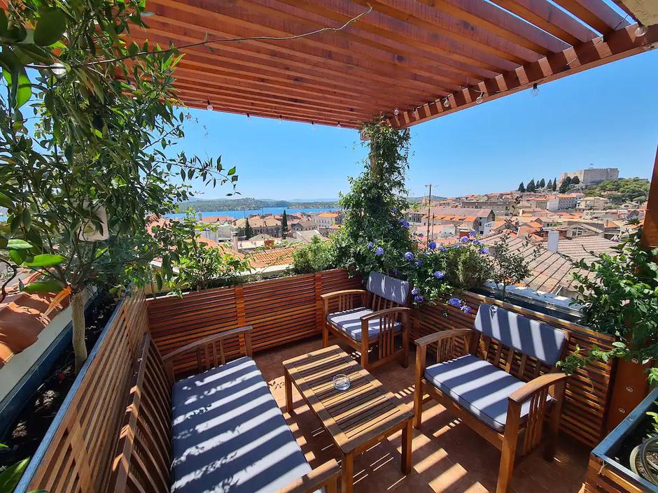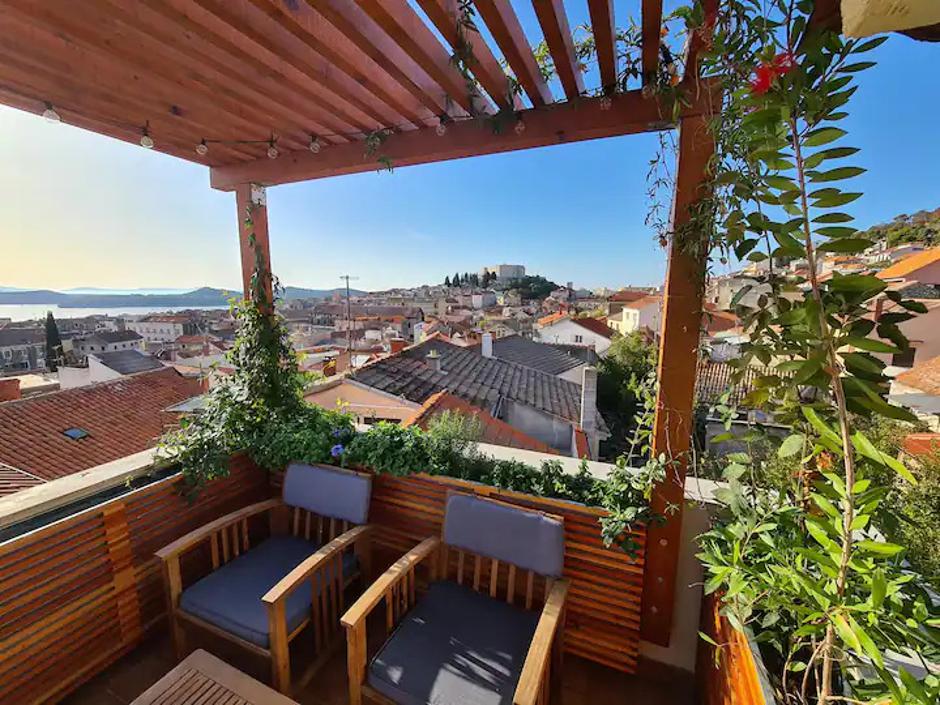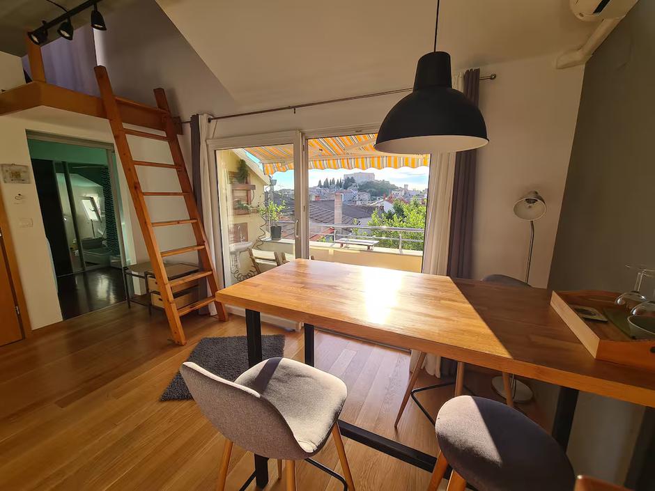 - U samom srcu Šibenika, skriven iza stare fasade, nalazi se prostrani potkrovni loft s nevjerojatnom krovnom terasom koja nudi spektakularan pogled na more, otoke i povijesnu jezgru grada