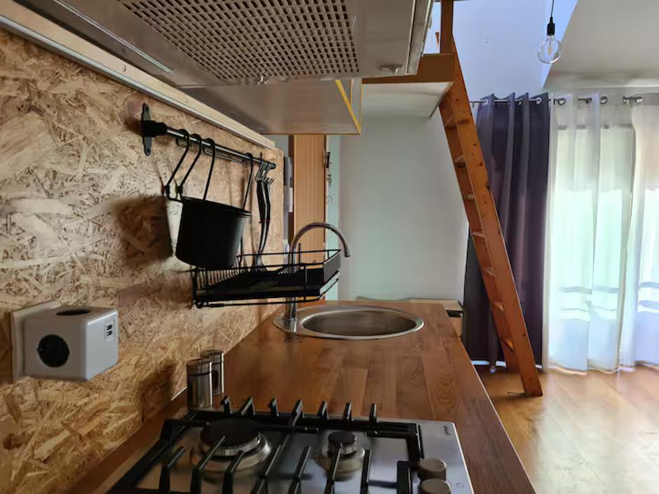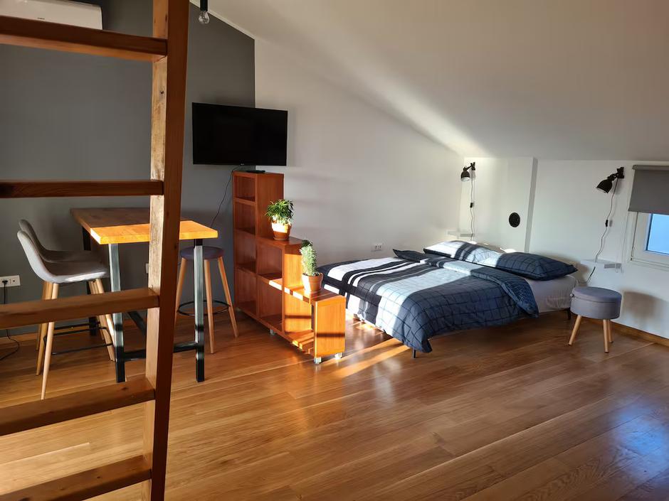 Smješten u potkrovlju, ovaj predivni apartman koncipiran je kao otvoreni prostor koji maksimalno iskorištava prirodno svjetlo. U središnjoj prostoriji smjestili su se prostor za spavanje s bračnim krevetom, potpuno opremljena kuhinja s visokim blagovaonskim stolom te izlaz na maleni balkon, no ono što ovaj loft čini pravim draguljem je iznenađenje do kojeg vode ljestve.