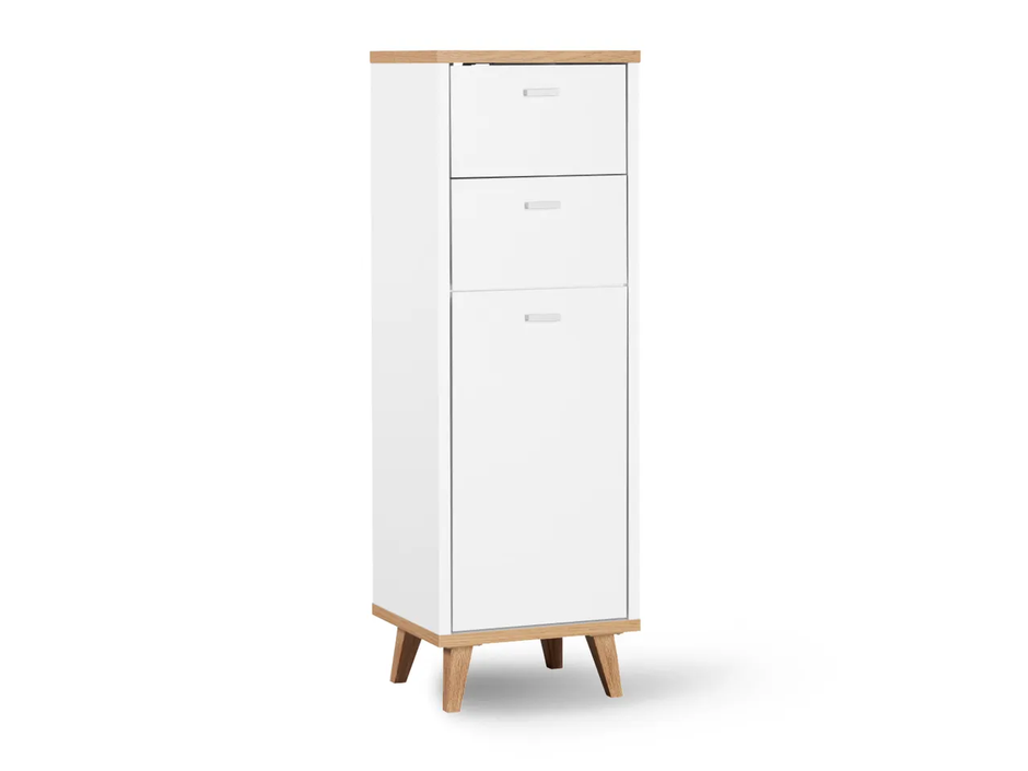 I posljednji, ali ne manje vrijedan kupaonski ormarić u Lidl ponudi jest duži i uži ormarić u bijeloj boji s drvenim nogicama i istom podlogom na vrhu. Ovaj kupaonski element idealan je za kupaonice koje nemaju mnogo mjesta kada je širina u pitanju. Lidl ormarić ima dvije ladice i jedna visoka vrata. Idealan je za kupaonske ručnike, kozmetiku, sredstva za čišćenje... Njegova cijena iznosi 44 eura, i odlično će se uklopiti u svaku kupaonicu, bilo da ista već postoji ili je u izradi.