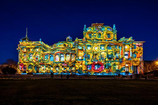 Povijesna fasada Hrvatskog narodnog kazališta oživjet će u šarenim uzorcima i svjetlosnim slikama, donoseći emocije ljubavi, sreće i nade, i to u režiji FOL International Daniel Margraf – Spreefunkeln/GERMANY.